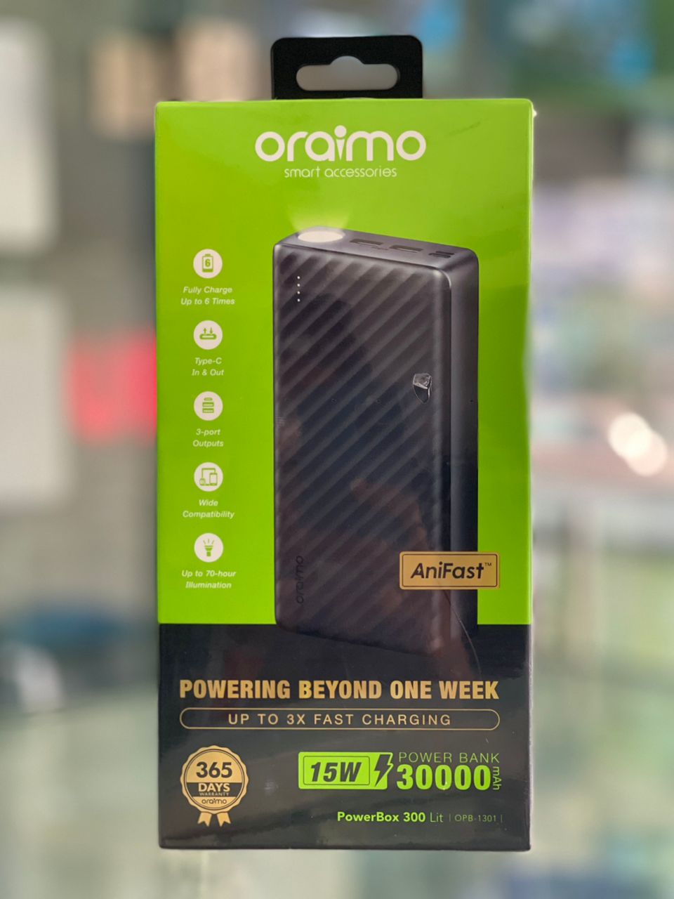 Introducing ORAIMO 30000mAh Power Bank: Compact, reliable, and fast charging. Stay powered up on-the-go. Available at Ukamart with top-notch customer service.