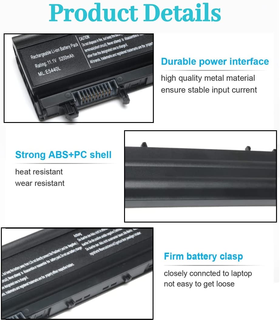 • 【GUARANTEE】 11.1V 5200mAh E5440 E5540 laptop batteries have passed strict intelligent detection, such as short circuit protection, over voltage protection, discharge protection, over current protection, which is very important for battery’s use cycle and safety. All batteries are equipped with high quality material to ensure good performance. CE, FCC, RoHS certificated.